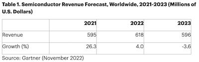 Worldwide Semiconductor Revenue Growth to Decline 3.6% in 2023